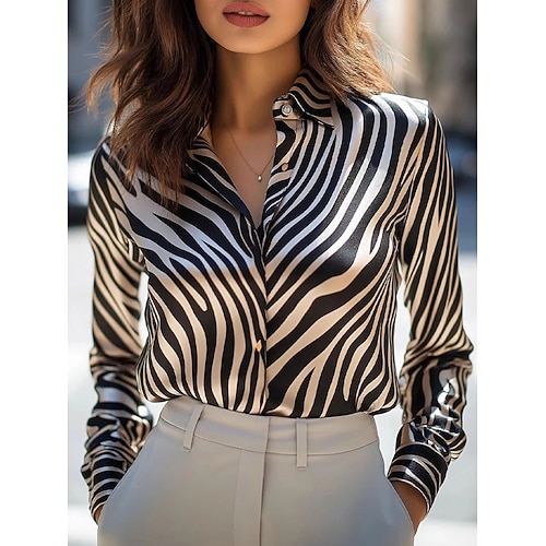 Per donna Camicia da lavoro Grafico Geometrico Elegante Moderno Casual Manica Lunga Colletto a Camicia Top Regolari Lavoro Abbigliamento da sera Quotidiano Argento Blu Viola Oro Verde Autunno Inverno