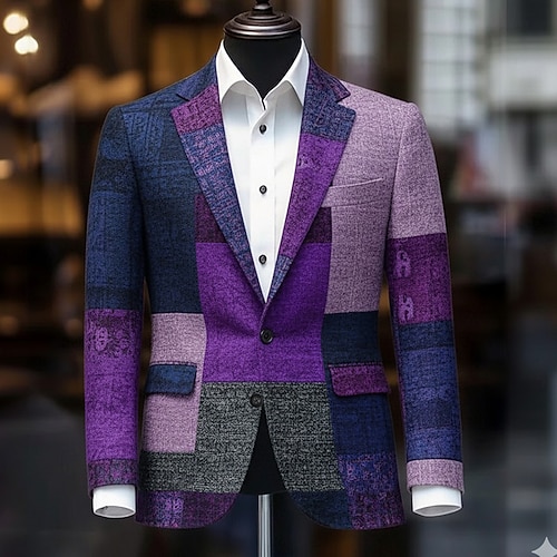 Per uomo Blocco di colori Giacca blazer Cappotto Confortevole Traspirante Artistico Casual Quotidiano Abbigliamento da sera Stampa 3D Bottoni Multi-tasche Tutte le stagioni Dentellato Manica Lunga