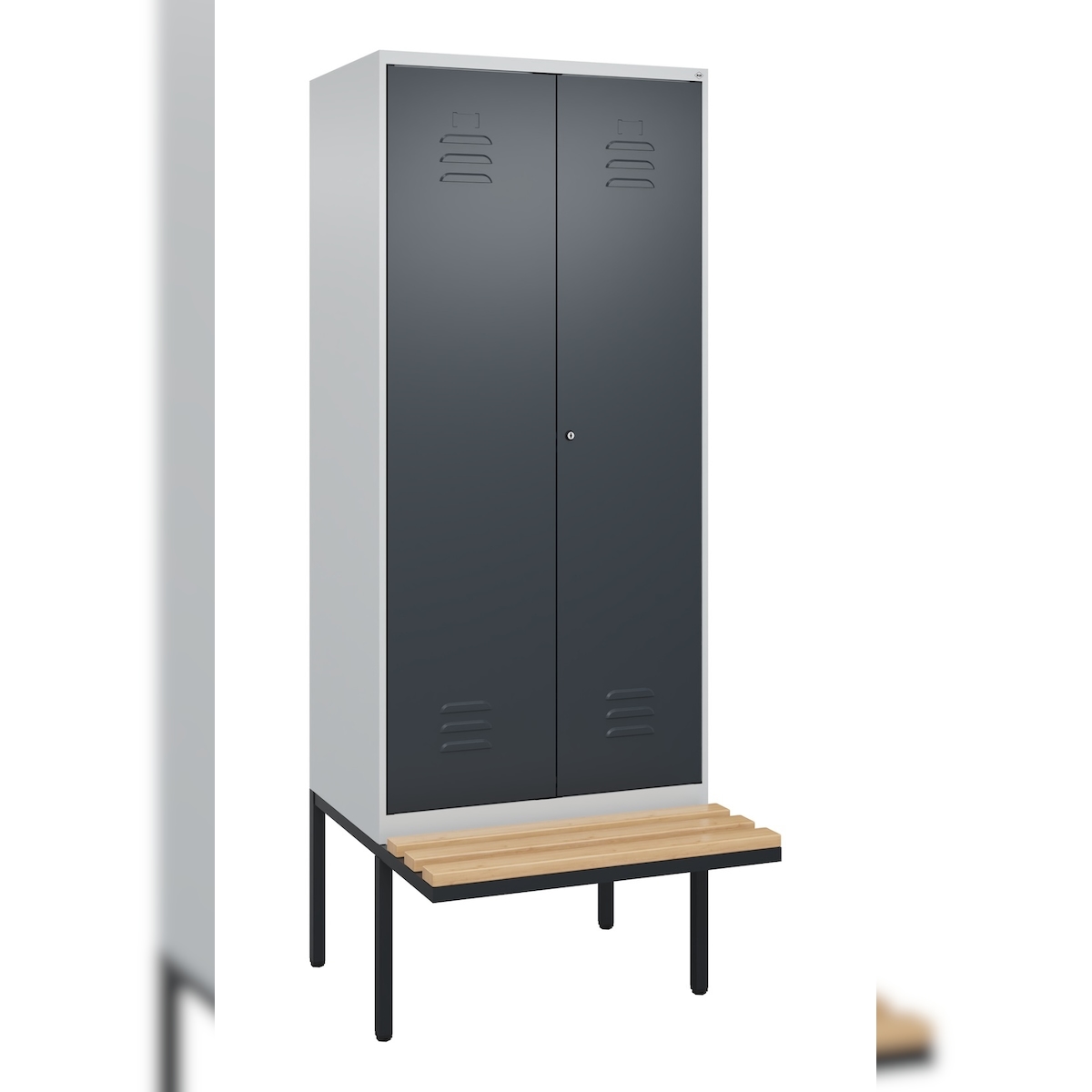 C+P Doppel-Spind Classic PLUS, schwebender Sitzbank aus Buche 2 Abteile, HxBxT 212x80x82cm, Zylinderschloss, Hellgrau/Anthrazit von PROREGAL