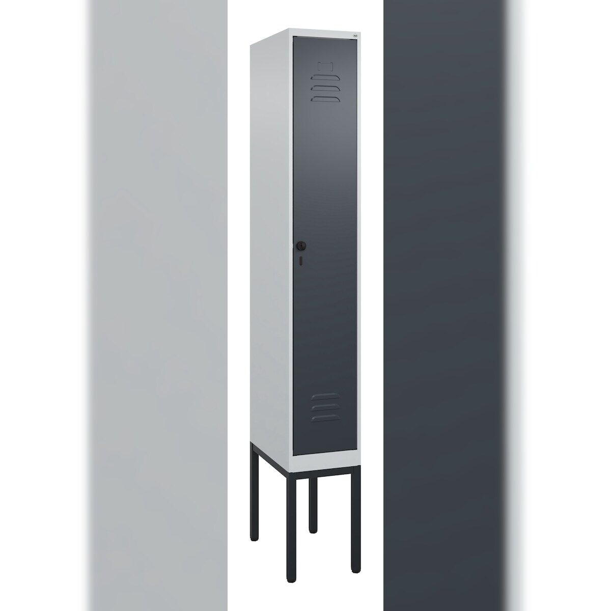 C+P Spind Classic PLUS, Gestell, 1 Abteil, HxBxT 212x30x50cm, Sicherheitsdrehriegel, Hellgrau/Anthrazit von PROREGAL