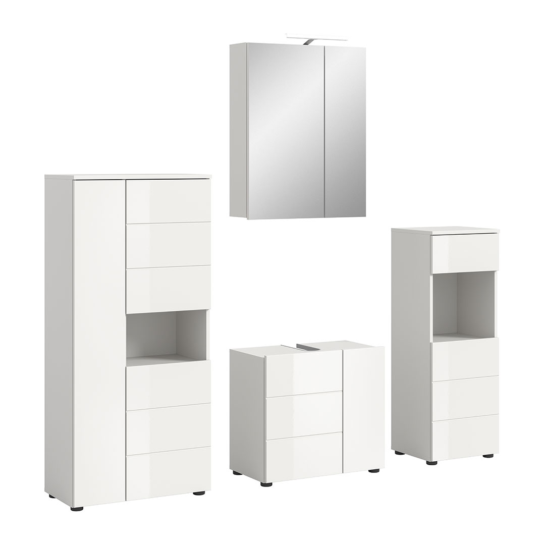 Ebuy24 Vira Badmöbelset 5 Teile inkl. Beleuchtung weiß Hochglanz, weiß.