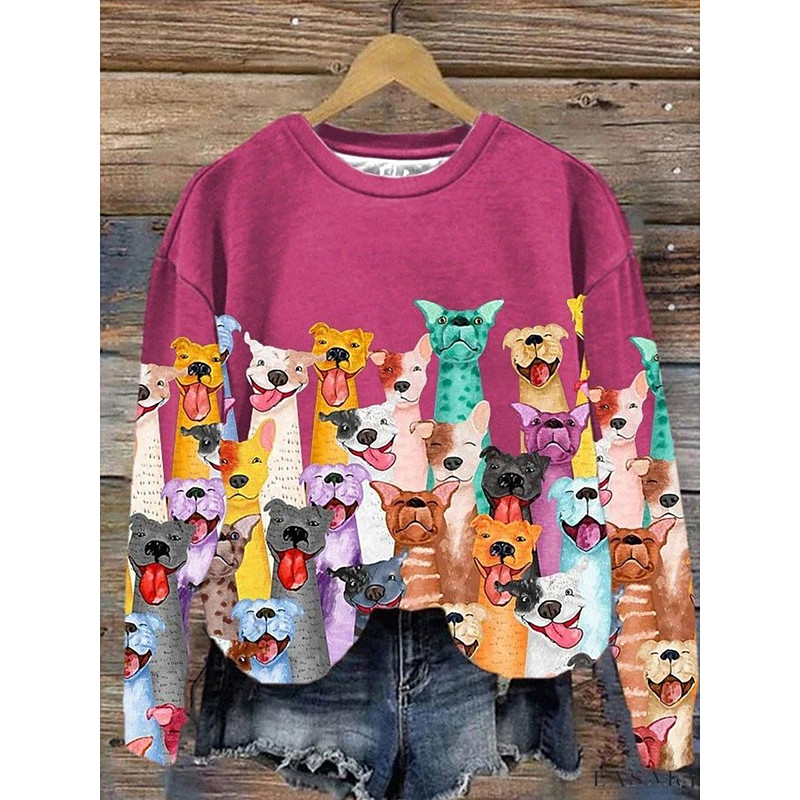 Women's Sweatshirts Graphic Animal Casual Long Sleeve Crew Neck Regular Tops Street Dailywear Print Pink Orange Fall Winter