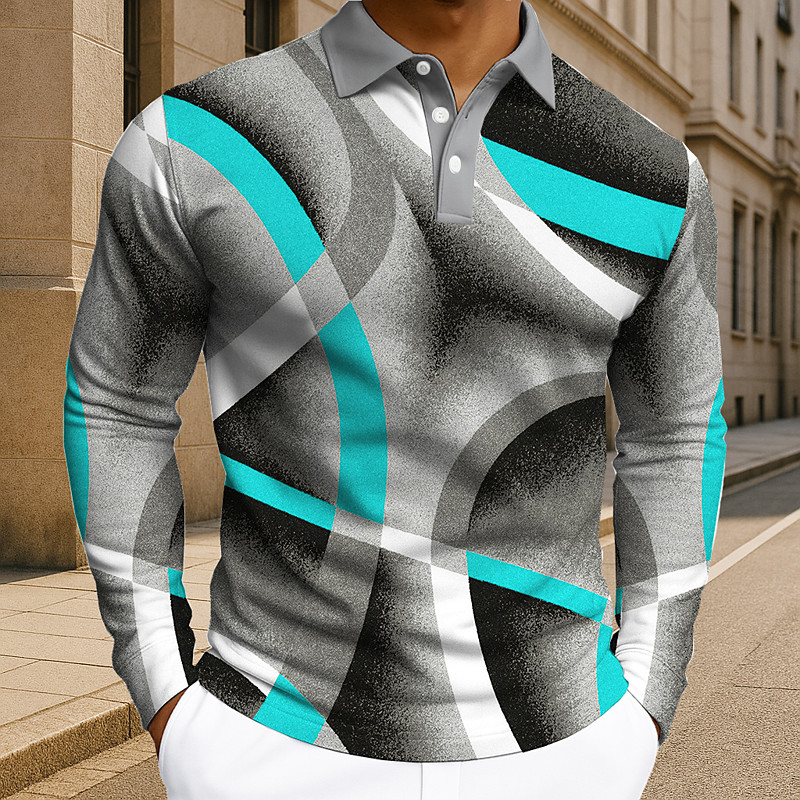 Men's Geometic Polo Long Sleeve Polo Shirts Lapel Casual Athleisure Daily Wear 3D Print Buttons Spring Fall Winter Red Blue Green