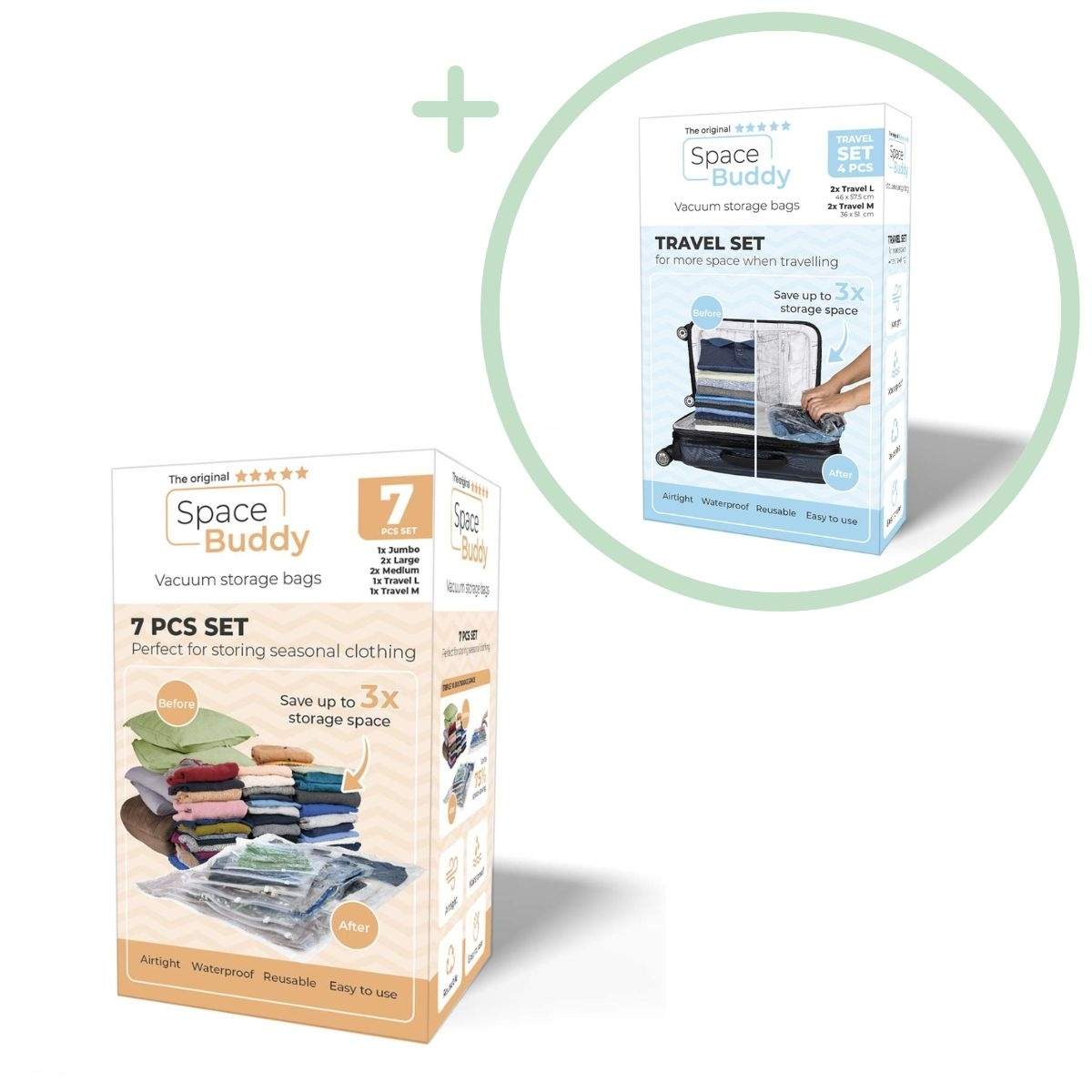 Space Buddy - Vacuum Säilytyslaukut - 7 kpl setti + 4 kpl Matkasetti