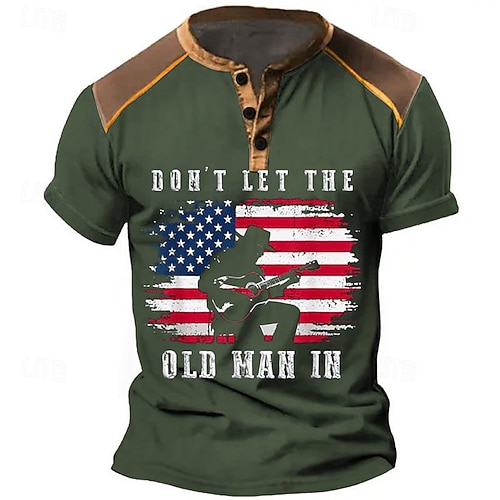 Herren T-Shirt Lass den alten Mann nicht rein Grafik Amerikanische Flagge Gitarrenspieler Country Musik Lifestyle Kurzarm Henley