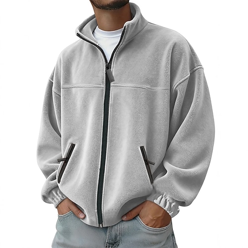 Per uomo Giacca da Esterno Giacca in Pile Formale Casa Calore Termico Tasca Base Primavera Autunno Inverno Tinta unica Attivo Neutro Colletto a Camicia Regolare Grigio scuro Nero Viola Arancione