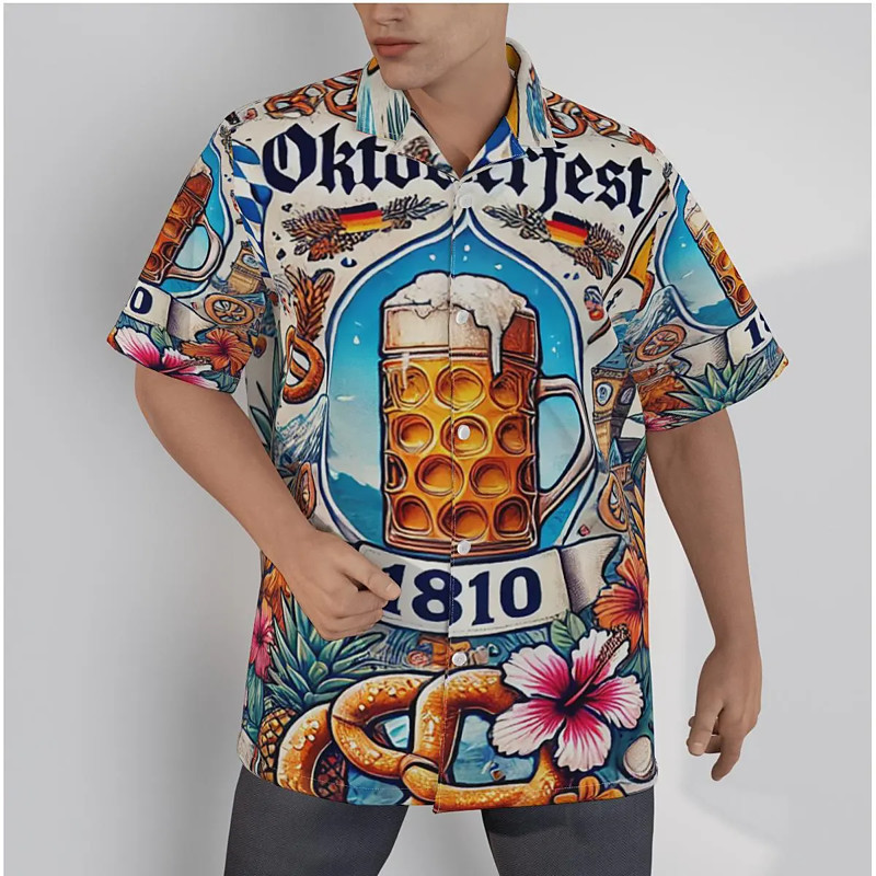 Bavarian Munich German Hawaiian Shirts Aloha Shirt Beer Pretzel Graphic for Men's Adults' 3D Print for Carnival Oktoberfest Beer Vacation Party