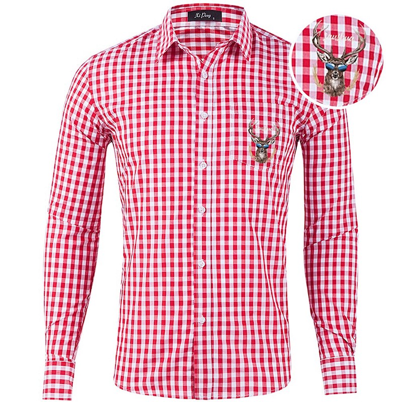 Oktoberfest Check Pattern Lederhosen Shirt Deer Print Bavarian German Wiesn Men's Carnival Beer Festival Traditional Style Cloth Shirt