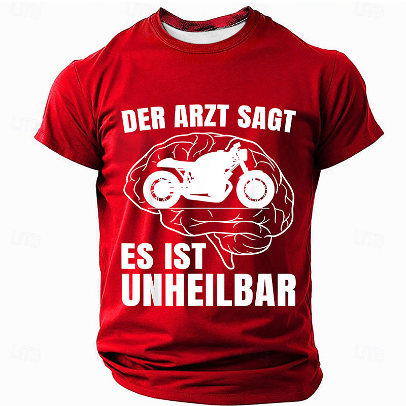 Men's Funny Motorcycle T-Shirt, 'The Doctor Says It's Incurable' Biker Brain Short Sleeve Tee