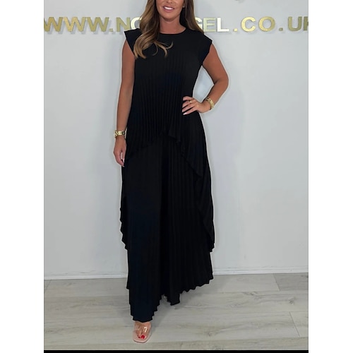 Per donna Set di Pantaloni Bolero Top Senza Maniche Girocollo Semplice Arricciato Moda Streetwear Casuale Quotidiano All'aperto Blu Nero Rosa Estate Vestibilità comoda