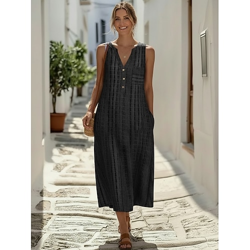 Per donna Abito maxi Abiti in cotone e lino Abito a Tubino Vestito Estivo Abito Bianco Streetwear Casual Vacanza Vestibilità comoda Senza Maniche Girocollo Nero Bianco Giallo Grigio Estate