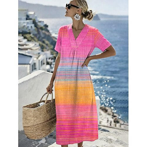 Per donna Abito Midi Abito a Tubino Vestito Estivo Vacanza Casual Spiaggia Quotidiano Uscire Vestibilità comoda Ombre Grafico Manica Corta Scollo a V Blu Rosa Viola Arancione Estate Primavera