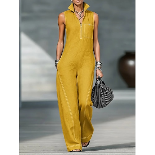 Per donna Normale Tuta Attivo Tinta unica Senza Maniche Gamba larga Colletto a Camicia Cerniera Tasca Quotidiano Vacanza Vestibilità comoda Blu Nero Giallo Estate