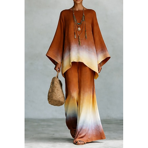 Per donna Set di Pantaloni Manica Lunga Girocollo Grafico Sfumatura Stampato Moda Streetwear Casuale Quotidiano All'aperto Nero Rosa Marrone Estate Vestibilità comoda