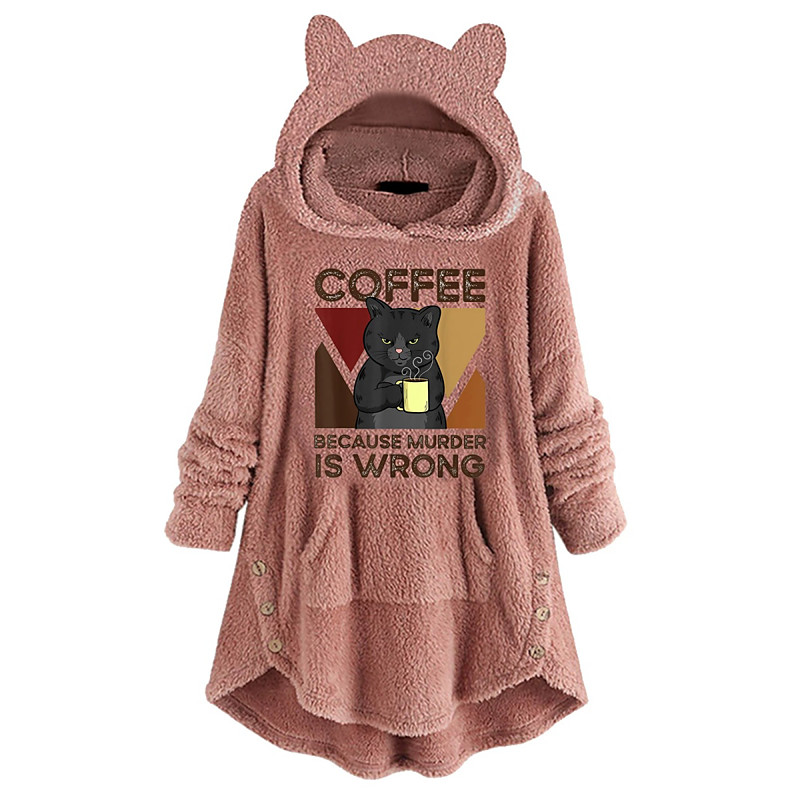 Women's Pullover Hoodie Sweatshirt Geometric Cat Casual Long Sleeve Hooded Crop Tops Street Dailywear Casual Pink Wine Dark Pink Dark Gray Gray Fall Winter