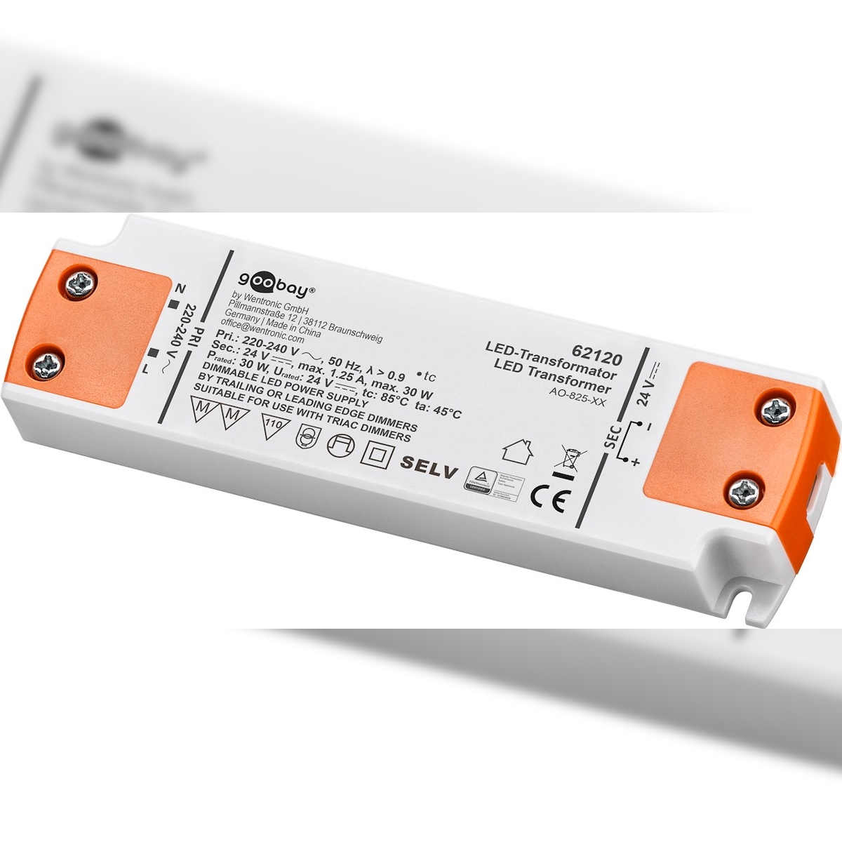 Goobay 62120 LED-Trafo 24 V (DC)/30 W, 30 W - dimmbar, 24 V DC für LEDs bis 30 W Gesamtlast