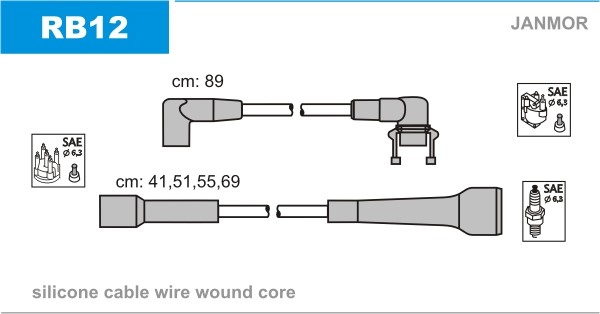 Sytytysjohtosarja Janmor RB12 - renault 11, 9 - OE 77 00 855 768, 77 00 873 186, 7700718084