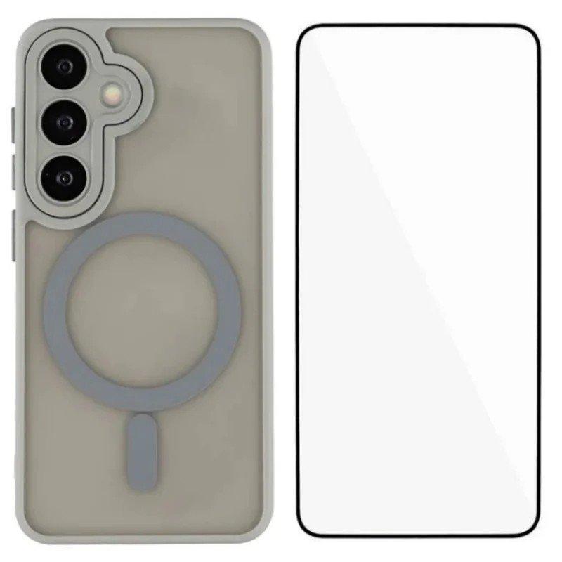 WANLONFENG Mobilskal för Samsung Galaxy S26 Magnetiskt Plast med skärmskydd Grå