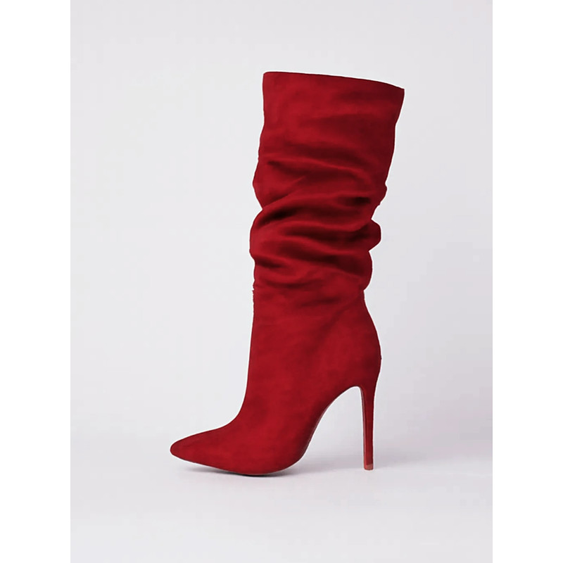 Women's Slouchy Suede Stiletto Boots, High Heel Pointed Toe Mid-Calf Boots in Multiple Colors for Stylish Fall and Winter Outfits