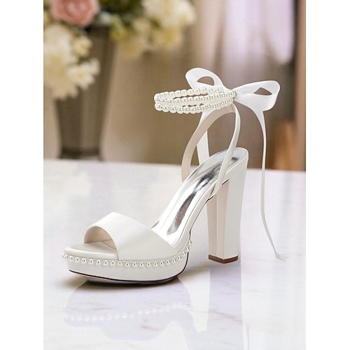 Damen-Plateau-Pumps aus rosa Satin mit Perlen-Fesselriemchen und Schleife – elegante High-Heel-Sandalen für Cocktailpartys und formelle Anlässe