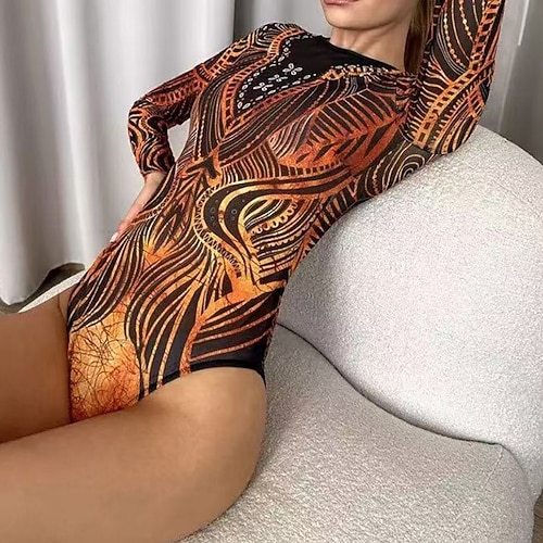 Per donna Costume da bagno Costumi da bagno One Piece Boho Elastico Manica Lunga Costume da Bagno Surf Spiaggia Vacanze Estate