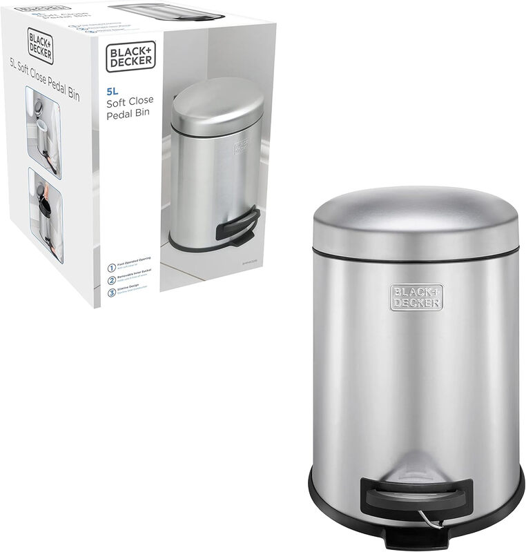 BLACK+ DECKER 5L Dome Lid Pedal Bin - Stainless Steel