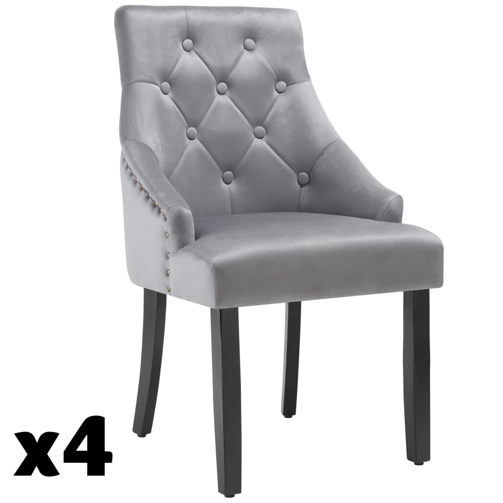 Set di 4 sedie per sala pranzo in velluto grigio chiaro/nero