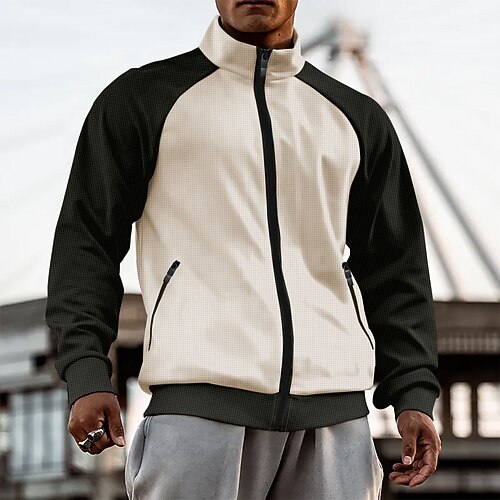 Per uomo Felpa con cappuccio e zip Felpa con cappuccio a zip intera Felpe con zip Bianco Marrone Cachi Grigio Colletto Mao Color Block Liscio Zip Up Collage Sportivo Giornaliero Per eventi Streetwear