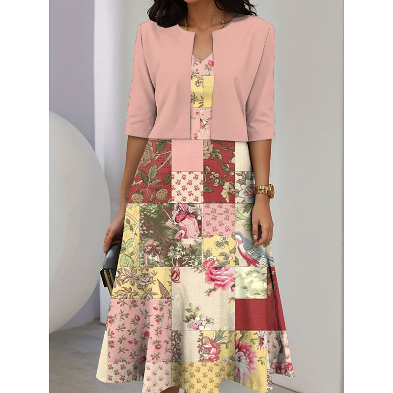 Women's Dress Set A Line Dress Midi Dress Elegant Casual Floral Graphic Patchwork Print Midi Dress Half Sleeve Crew Neck Vacation Date Pink Blue Purple Summer Spring Regular Fit