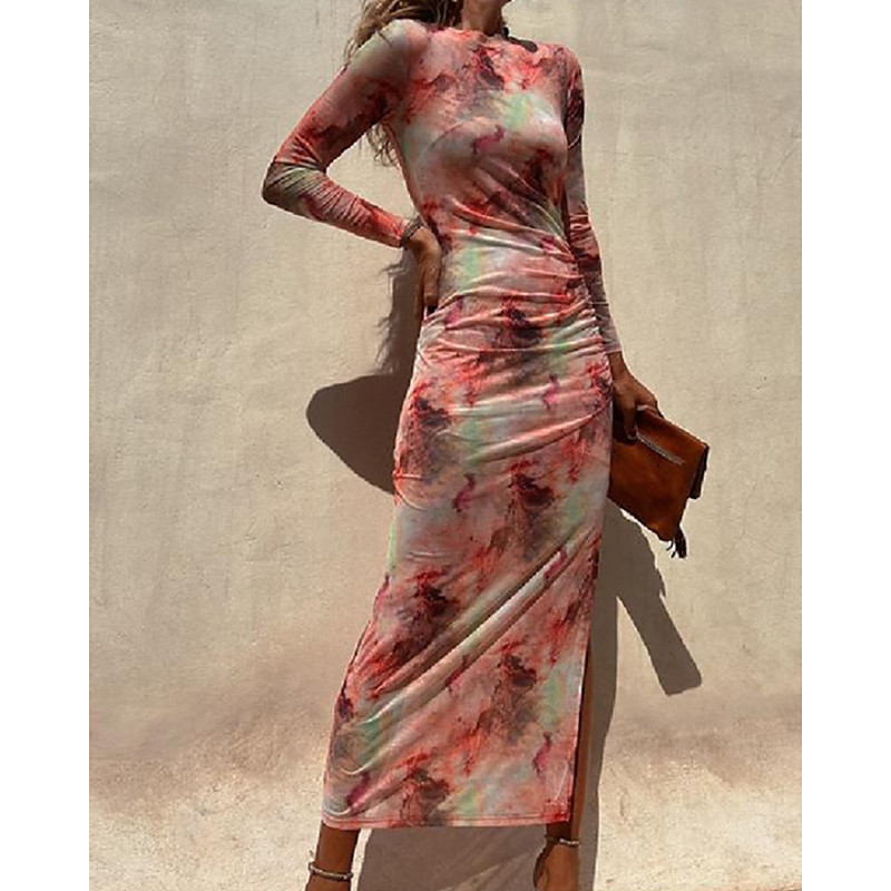 Women's Midi Dress Party Dress Cocktail Dress Sheath Dress Print Dress Modern Evening Party Party Special Occasion Regular Fit Floral Long Sleeve Crew Neck Blue Black Pink Spring Fall