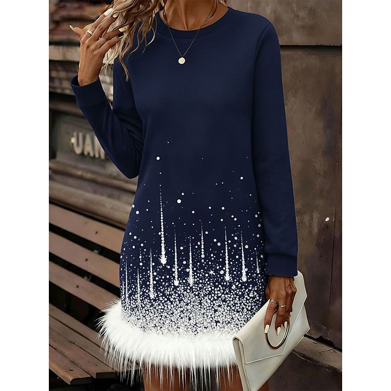 Women's Mini Dress Casual Dress Winter Dress Sheath Dress Elegant Fashion Daily Outdoor Vacation Regular Fit Graphic Galaxy Long Sleeve Crew Neck Black Navy Blue Green Dark Purple Spring Fall Winter