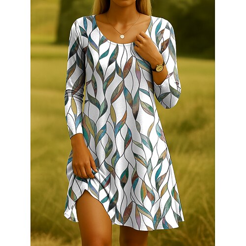 Per donna Abito Midi Vestito T-Shirt Vestito Estivo Abito a trapezio Casual Quotidiano Ferie Data Vestibilità regolare Floreale Grafico Manica Lunga Girocollo Blu Nero Bianco Verde scuro Estate