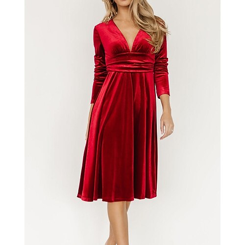 Per donna Abito Midi Abito di Natale Abito in Velluto Vestito da Festa Abito da Cocktail Elegante Moderno Festa serale Feste Vestibilità regolare Semplice Manica Lunga Scollo a V Nero Rosso Verde