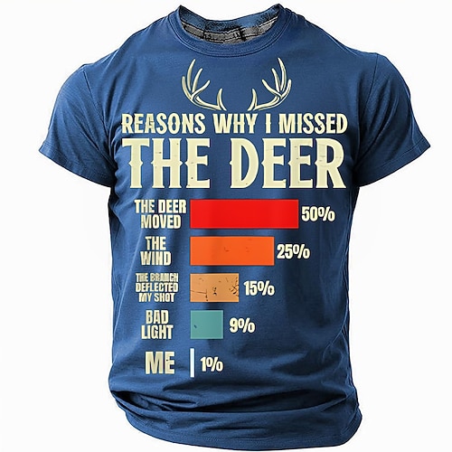 Herren Hirsch T Shirt Kurzarm T-Shirt 3D-Druck Rundhalsausschnitt Hemd Mode Täglich Straße Täglich Blau Schwarz Rote Sommer Frühling Bekleidung S M L XL XXL XXXL