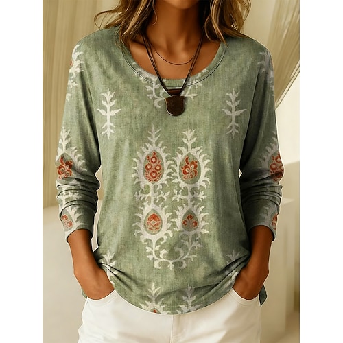 Per donna Maglietta Grafico Geometria Vintage Moda Casual Manica Lunga Girocollo Top Regolari Quotidiano Weekend Stampato Arancione Verde Autunno Inverno