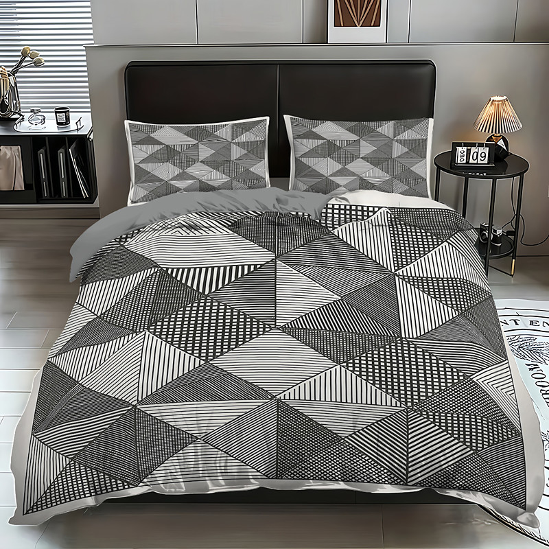 Abstract Geometry Splicing 3-Piece Down Duvet Cover Set for Large Bed, Soft Short Fluffy Comforter Cover with 2 Pillowcases – Hotel Bedroom Bedding, Cozy Comfortable