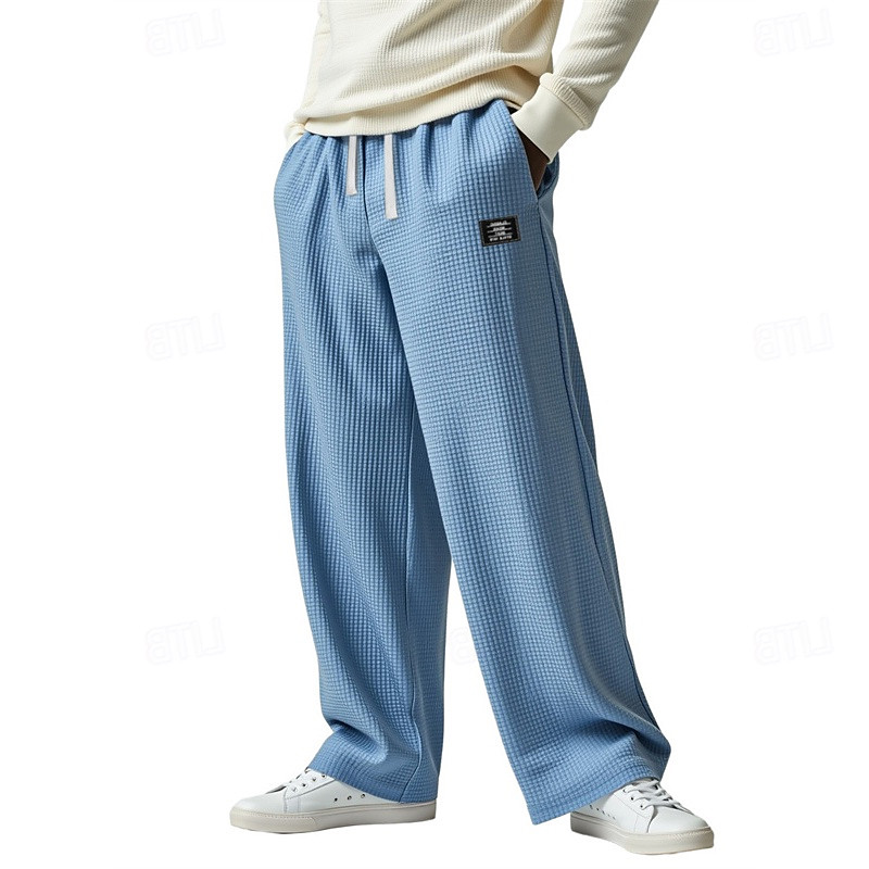Men's Baggy Sweatpants Sweatpants Trousers Waffle Pants Drawstring Pocket Elastic Waist Plain Comfort Sports Outdoor Daily Fashion Casual Blue Black Micro-elastic
