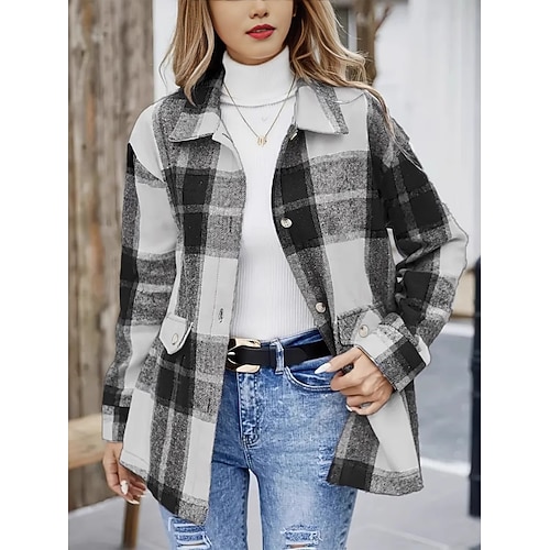 Per donna Giacca Camicia Giacca Casual Confortevole Traspirante Tasca Bottoni Stampato Casual Plaid Vacanza Streetwear Casuale Abbigliamento quotidiano Monopetto Regolare Collo ripiegato Vestibilit
