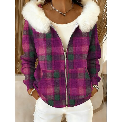 Per donna Felpe con cappuccio Grafico Plaid Casual Manica Lunga Con Cappuccio Top Regolari Abbigliamento Quotidiano Casuale Sportivo Blu Viola Marrone Verde Autunno Inverno