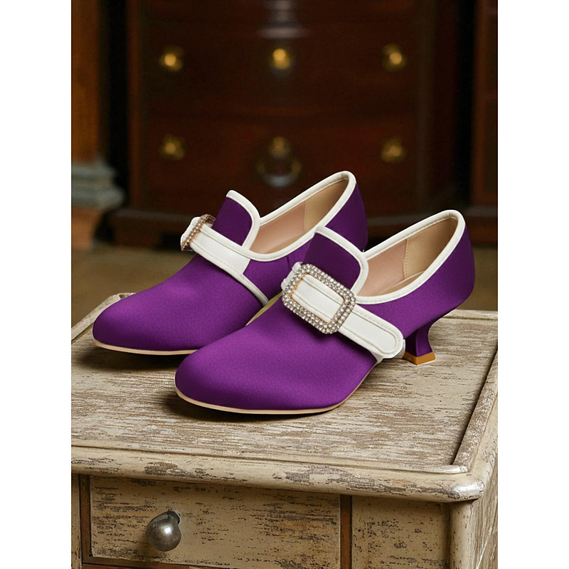 Women's 1920s Vintage Victorian Buckle Heels - Edwardian Satin Kitten Heel Dress Shoes for Lolita, Rococo and Gatsby Party or Cosplay Outfits