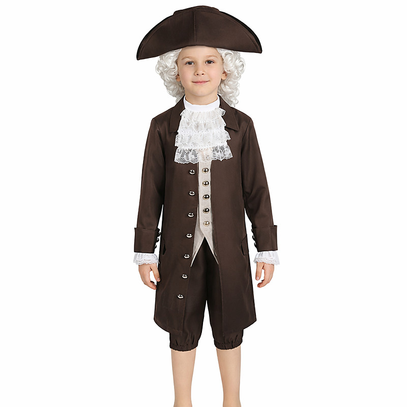 Rococo Baroque Victorian Outfits Long Sleeves George Washington Fancy Dress Boys' Carnival Independence Day American 250 4th of July Kid's Coat Pants Collar