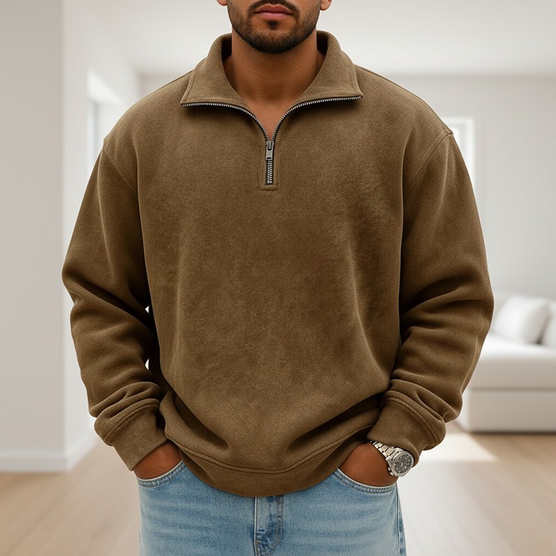 Men's Pullover Sweatshirt Zip Polo Casual Vacation Zip Long Sleeve Fashion Basic Solid Color Plain Fashion Fall Spring Fall Fall Winter Regular Fit Black Pink Navy Blue Dark Green Brown Khaki