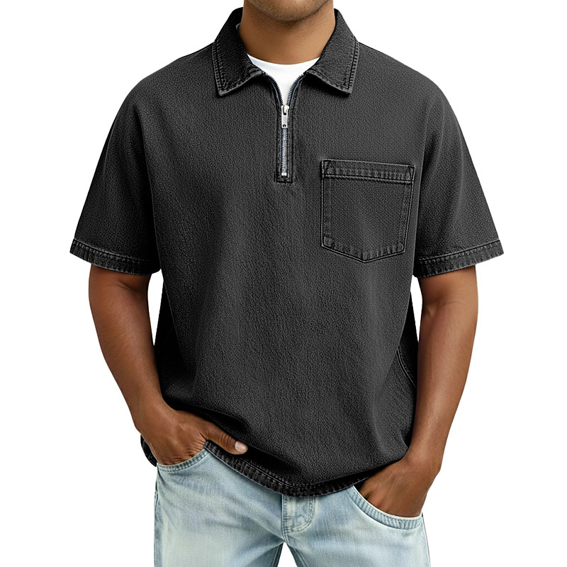 Men Zip Polo Cotton T Shirt Short Sleeve Quarter Zip Summer Spring Spring Summer Plain Fashion Basic Modern Zipper Pocket Daily Wear Date Weekend Black Pink Brown Top Tee for Men