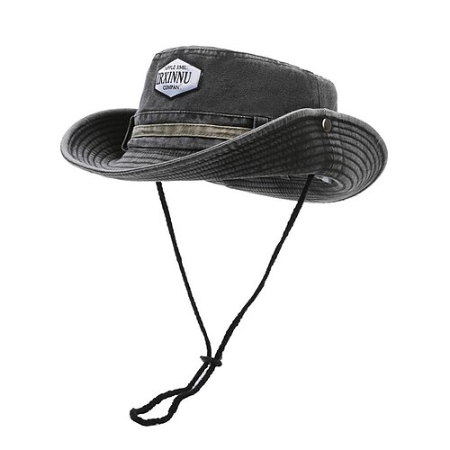 Cappello da pesca da uomo per esterni con cinturino regolabile sotto il mento, tessuto in tela di cotone, classica tesa larga arrotolabile, adatto per attività estive, escursionismo e viaggi