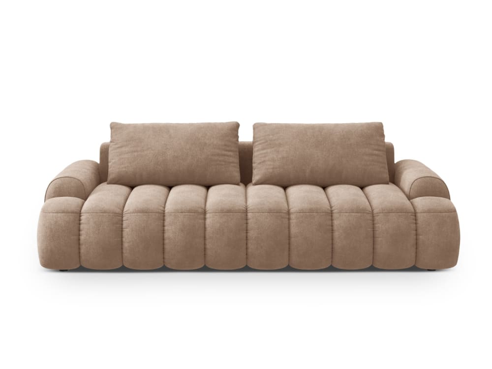 Divano convertibile con contenitore 4 posti in velluto beige scuro