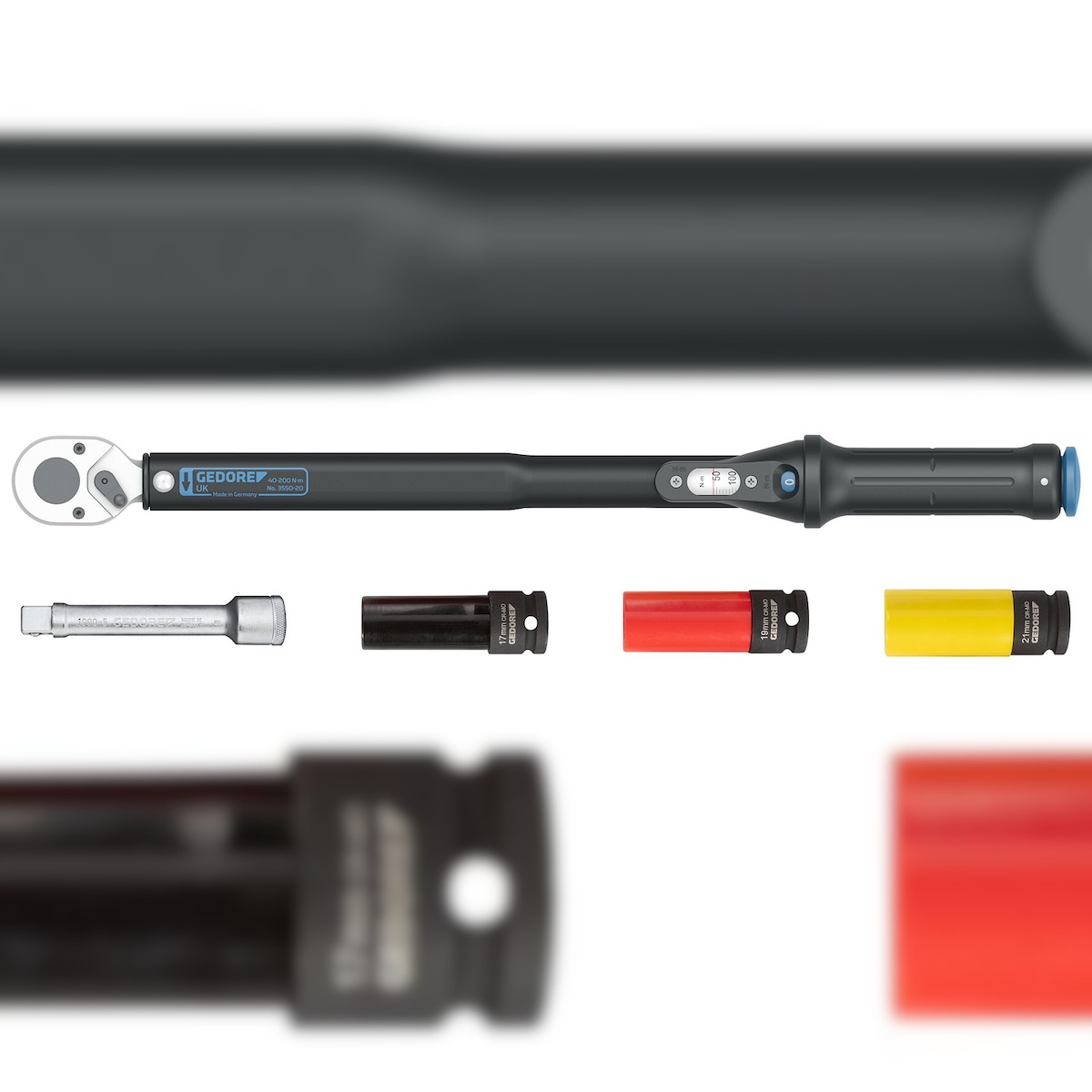 Gedore Drehmomentschlssel TORCOFLEX UK Set, 1/2" (schwarz, inkl. 3 Alufelgen-Steckschlsseleinstze) (3550-UK-LS4)