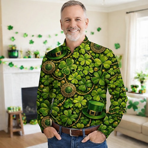 St. Patrick 2026 Retro Vintage 1970er Hemd Aloha-Hemd langarm Hippie Kostüm Herren Maskerade 4. Juli Party Festival Erwachsene Hemd