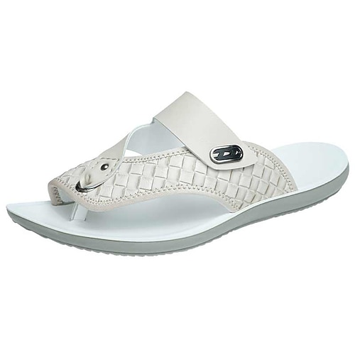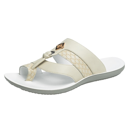 Sandali da uomo bianchi con anello per le dita, comodi e casual, ideali per resort e piscina, vacanze al mare, relax a bordo piscina, viaggi al mare, tempo libero estivo e stile vacanziero di tutti i giorni.