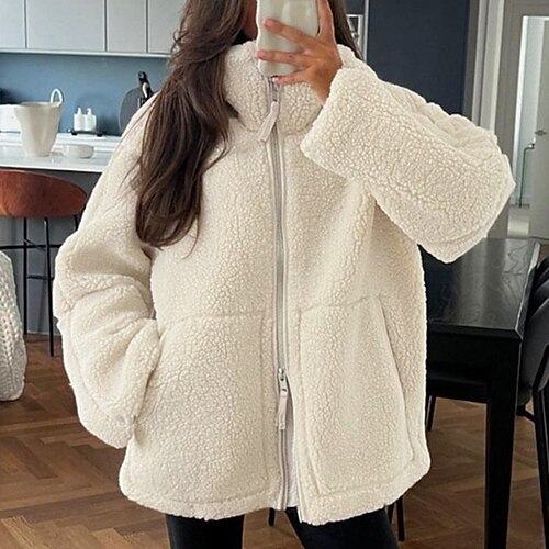 Per donna Cappotto Invernale Giacca Sherpa Giacca Casual Caldo Confortevole Cerniera Tasca Moda Casual Tinta unica Vacanza Casuale Abbigliamento quotidiano Uscire Regolare Collo alla coreana