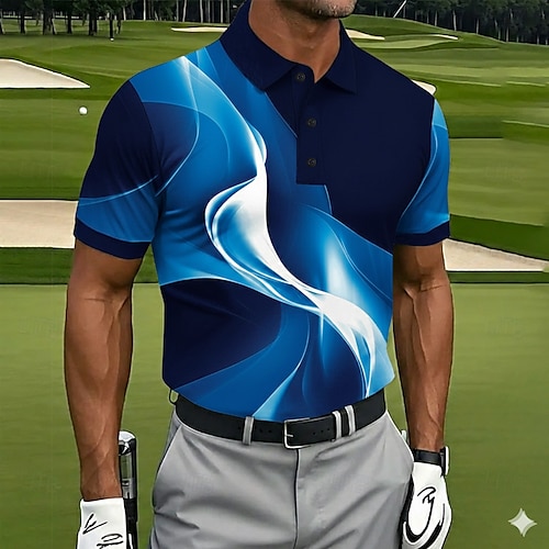 Per uomo Sfumatura Geometrico Polo Polo Sportivi Manica Corta Magliette polo Camicie con Colletto Casual Athleisure Bottoni Estate Blu azzurro cielo Viola